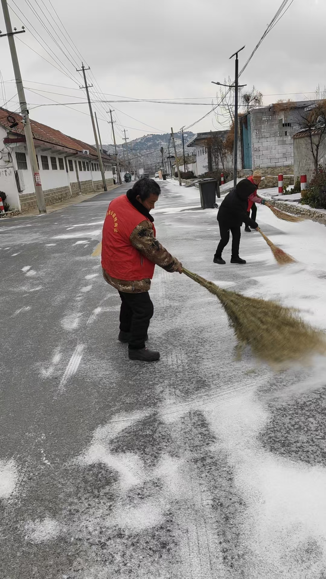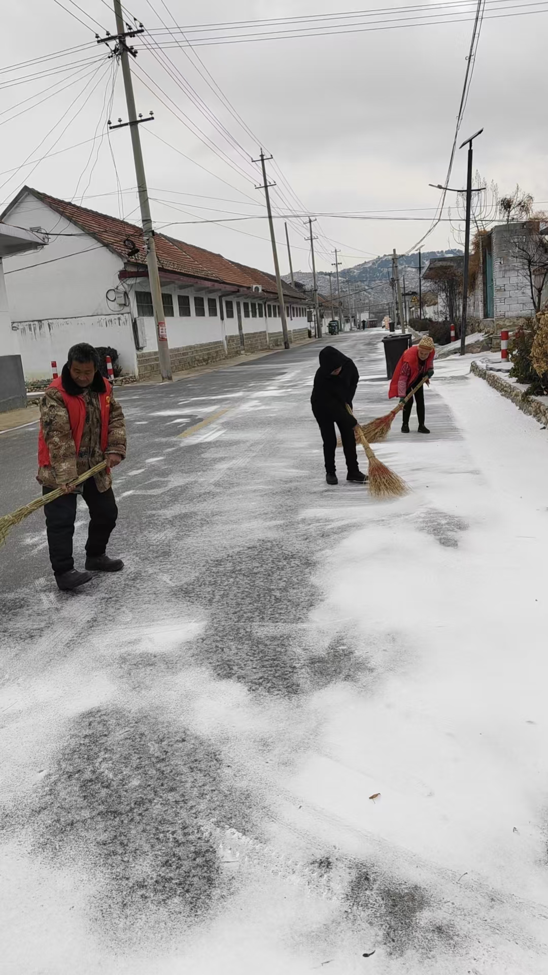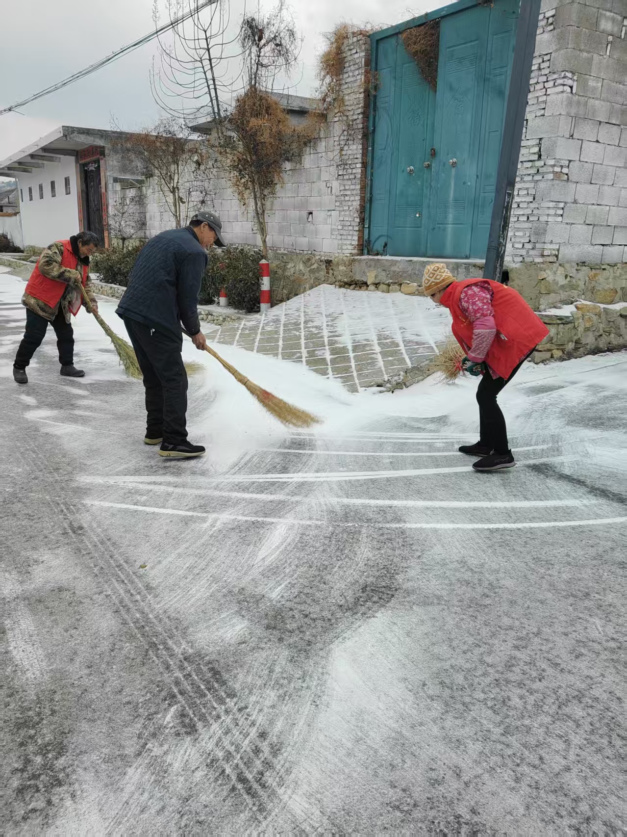 为保障道路畅通和村民出行安全,1月19日,崔家庄组织乡村党员志愿者再次集结,打响了一场清雪除冰的“暖心战役”。 天刚蒙蒙亮,志愿者们便带着铁锹、扫帚、等工具,奔赴各村主干道、村口桥头等重点区域开展除雪作业。大家不畏严寒、分工协作,有的挥锹铲雪,有的奋力清扫,有的合力推雪,一个个忙碌的身影在皑皑白雪中绘就了一道靓丽的风景线。