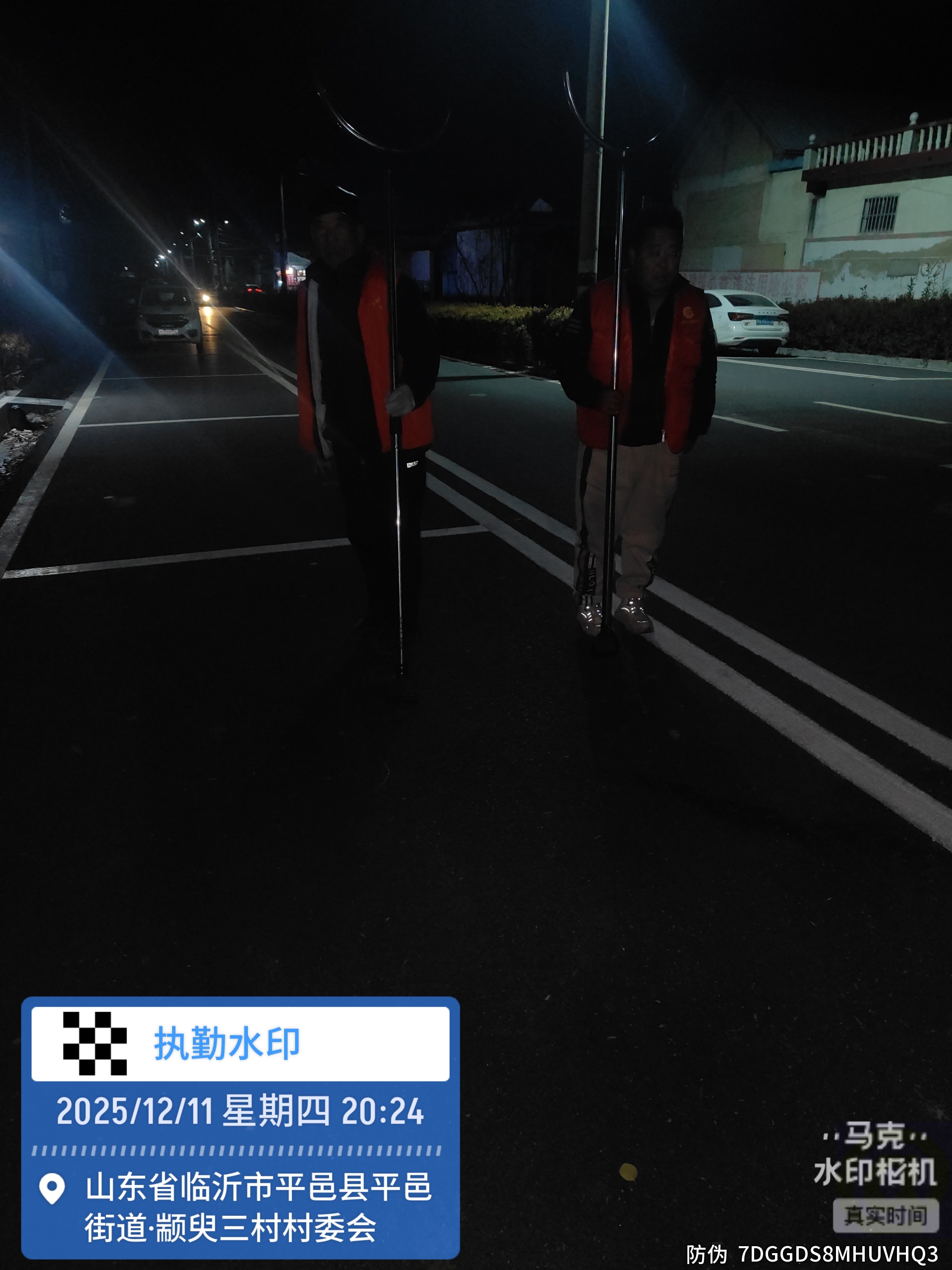 颛臾三村倡树美德志愿服务队夜间巡逻站岗因为寒冷值班防安全两委也参加准时到岗到位进行夜间巡逻站岗倡树美德志愿服务
