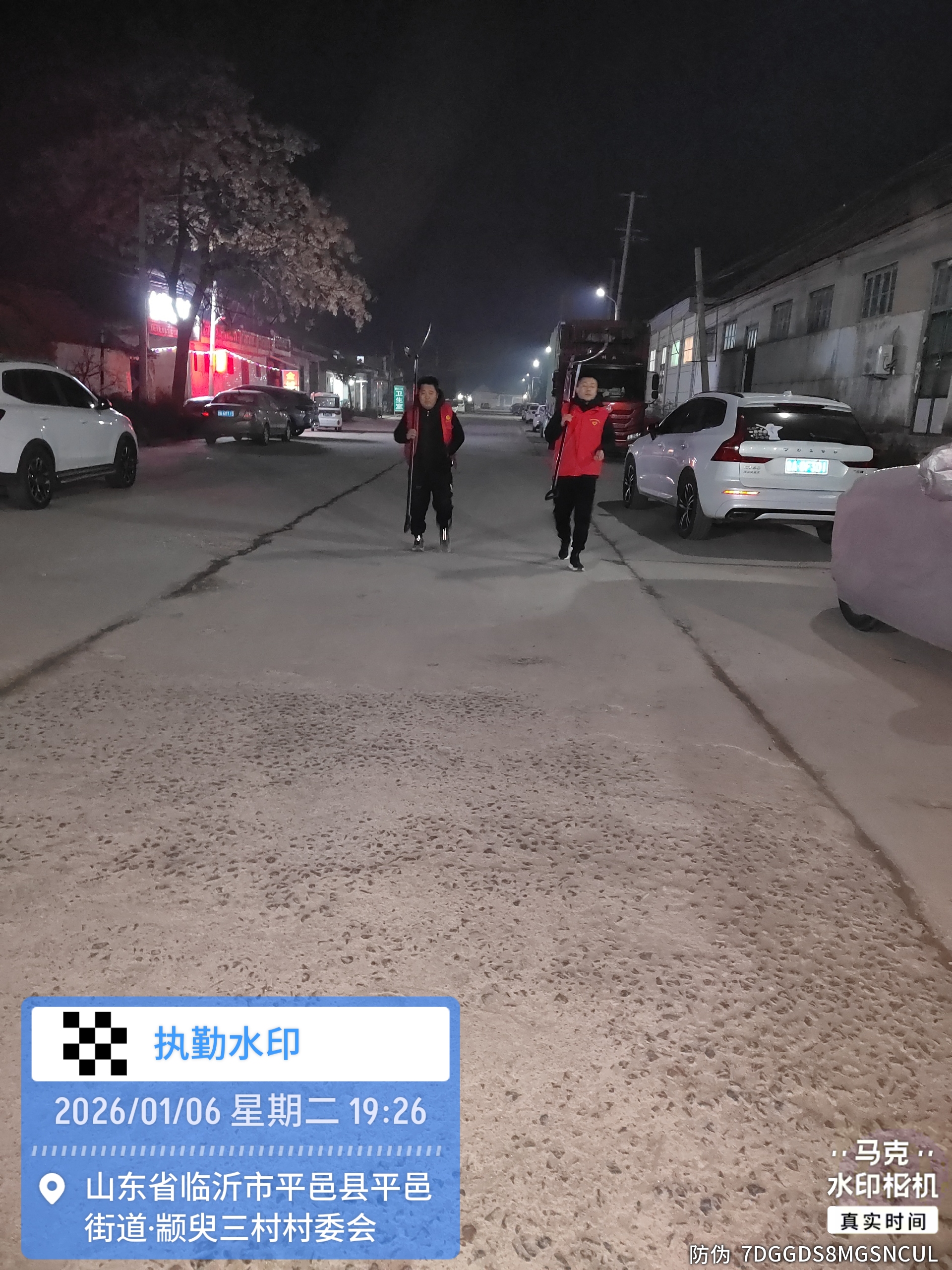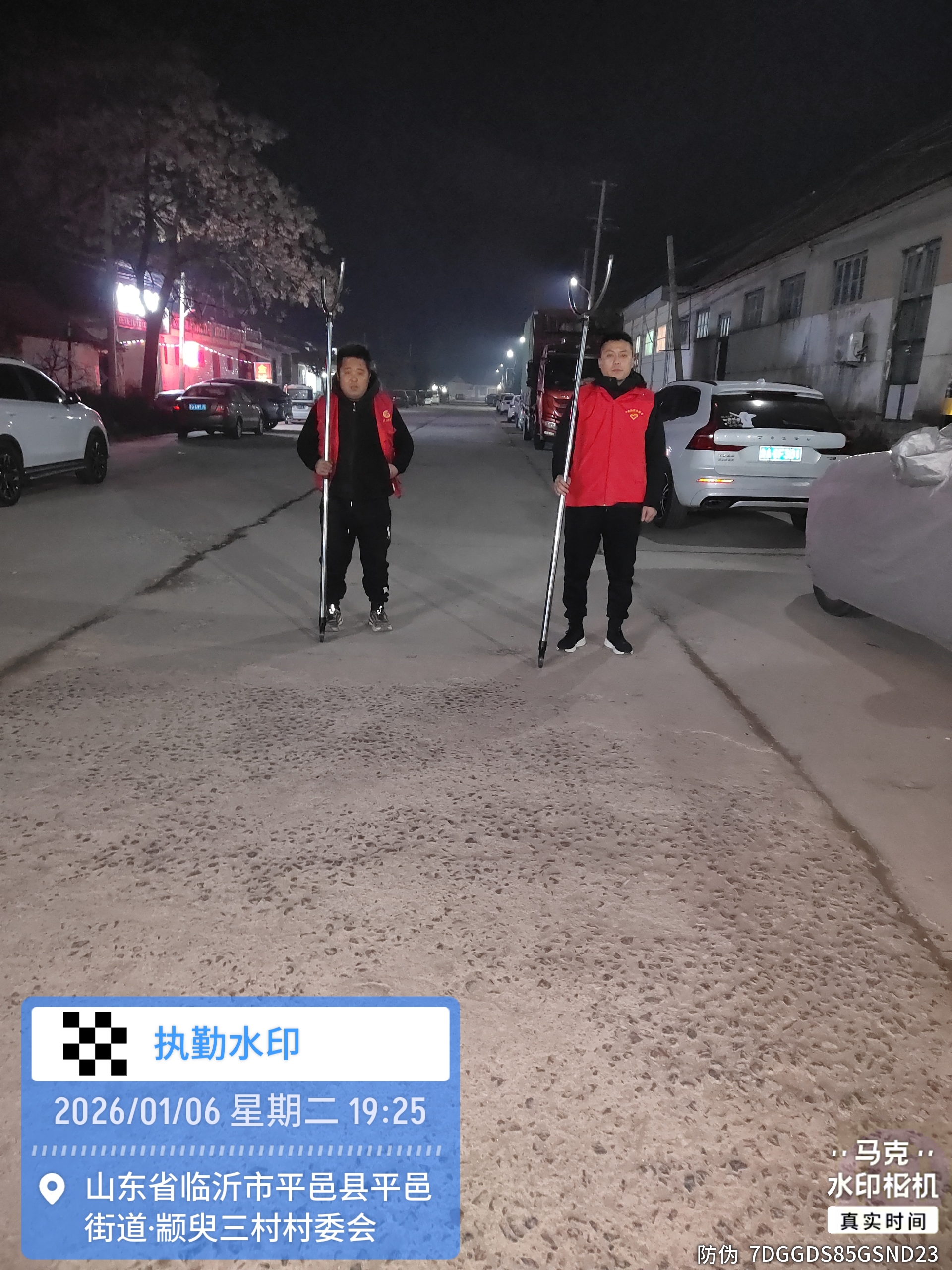 平邑街道颛臾三村志愿服务夜间巡逻防火防盗防安全两委也参加站岗防火防盗轮流值班防安全巡逻因为冬季防人身安全倡树美德志愿服务队