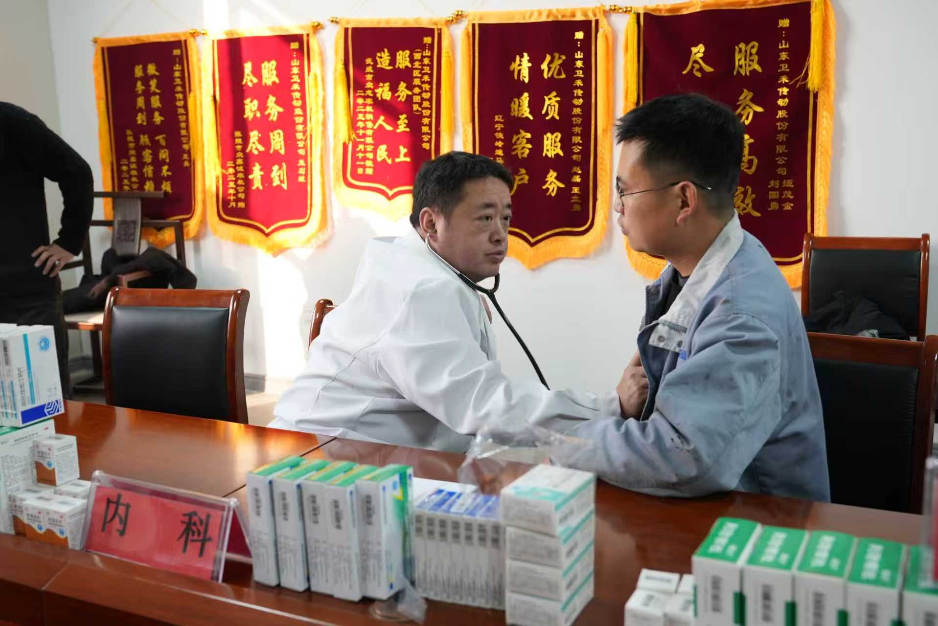 医疗党员志愿者们认真给居民检查身体,耐心的解答大家提出的疑难问题,问诊、量血压、诊断、健康咨询等义诊工作有条不紊的进行着