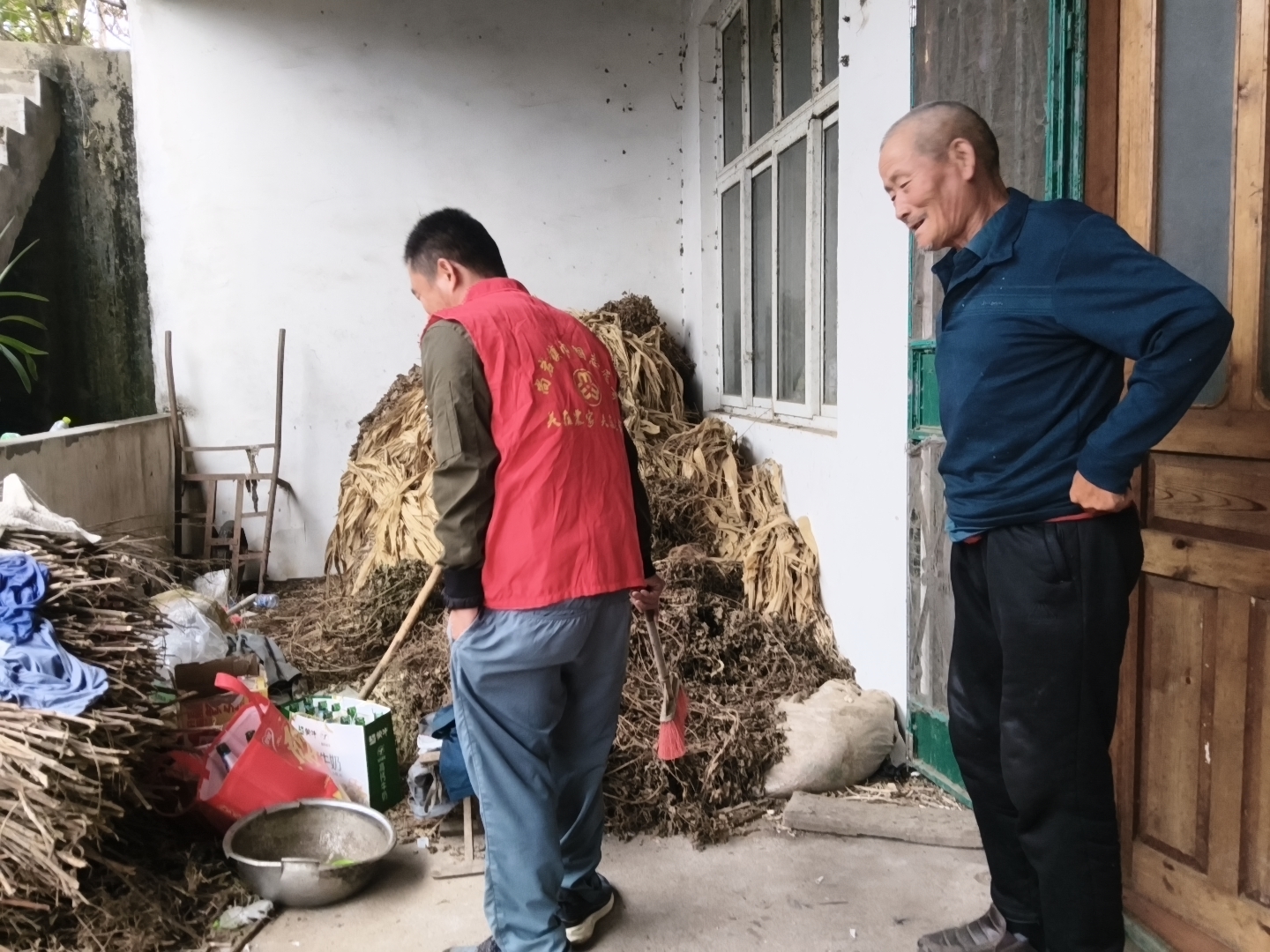 尚岩镇葛村志愿服务队为困难群众提供服务,为困难群众在家清理垃圾,打扫卫生,让假的环境优美,这是我们志愿者的心愿。