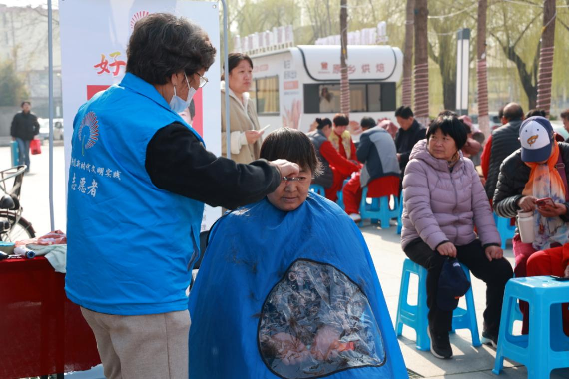 助人为乐“费县好人”赵永叶、姜子芹与“学雷锋”志愿者协会成员们摆起爱心义剪摊位,娴熟的手艺、贴心的服务,让居民们在家门口就能享受免费理发服务,收获满满幸福感;费县博爱医院组织医护人员为居民提供中医问诊、血压测量、视力检测等健康义诊服务,耐心解答居民的健康咨询,普及春季养生知识,传递健康生活理念。